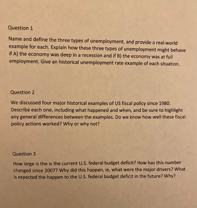Solved 3 Types Of Unemployment The Three People Described In Chegg Com